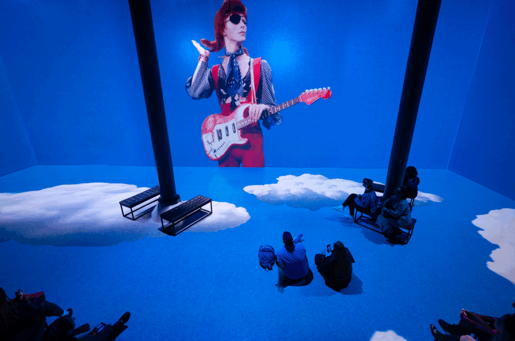 Amplified is much more narrative-based. This one has a story to tell about the evolution of rock music and the formation of Rolling Stone magazine. Killer riffs from iconic songs accompany images of gig posters, concert footage and trippy visuals. Many of the images are broadcast from left to right and right to left, with only select projections on the floor. This is less immersive than Blooming Wonders and more about appreciating than being stunned. Thus, the patrons at a recent visit remained stationary and didn’t even use the cushions on the floor.